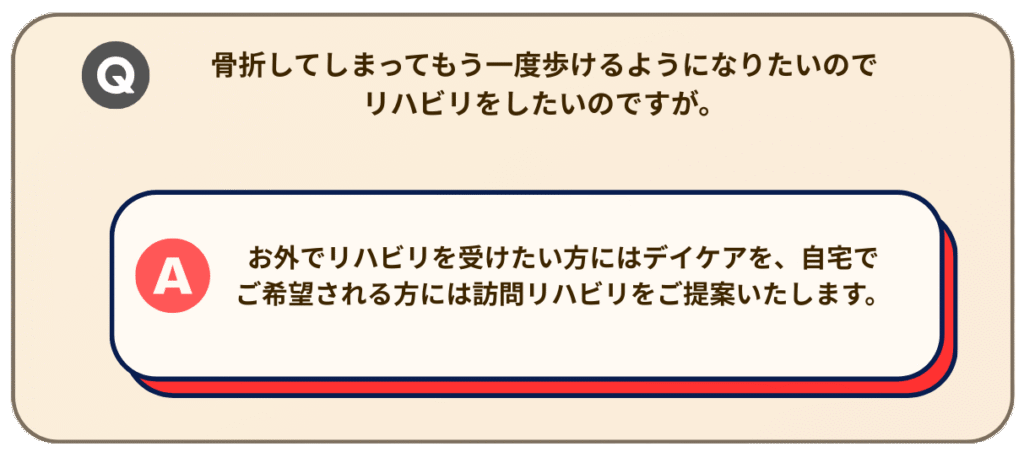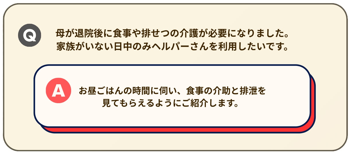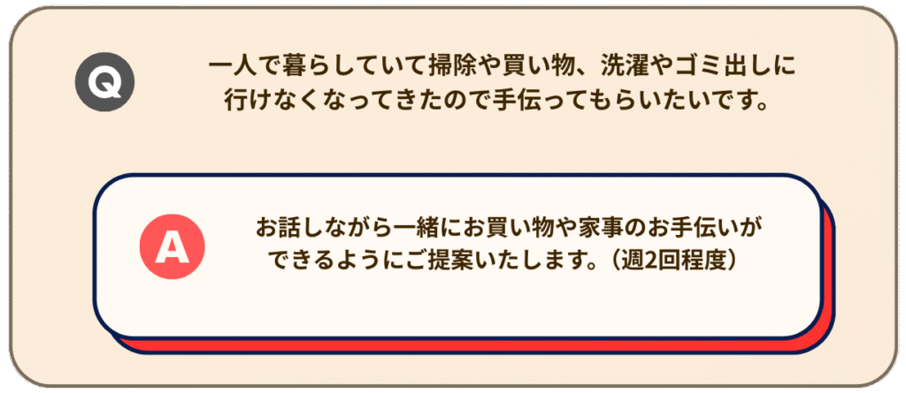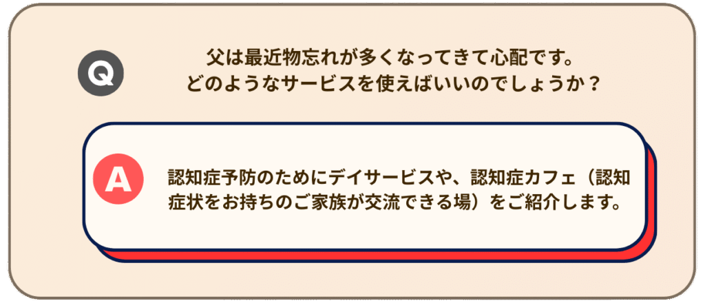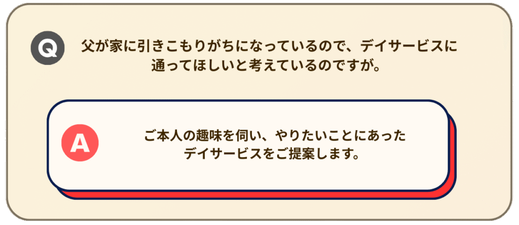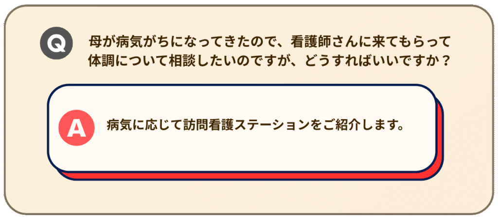 一人ひとりに合った必要なサービスをさまざまに組み合わせながら、サービス提供者の候補を紹介し、ケアプランを作成します。